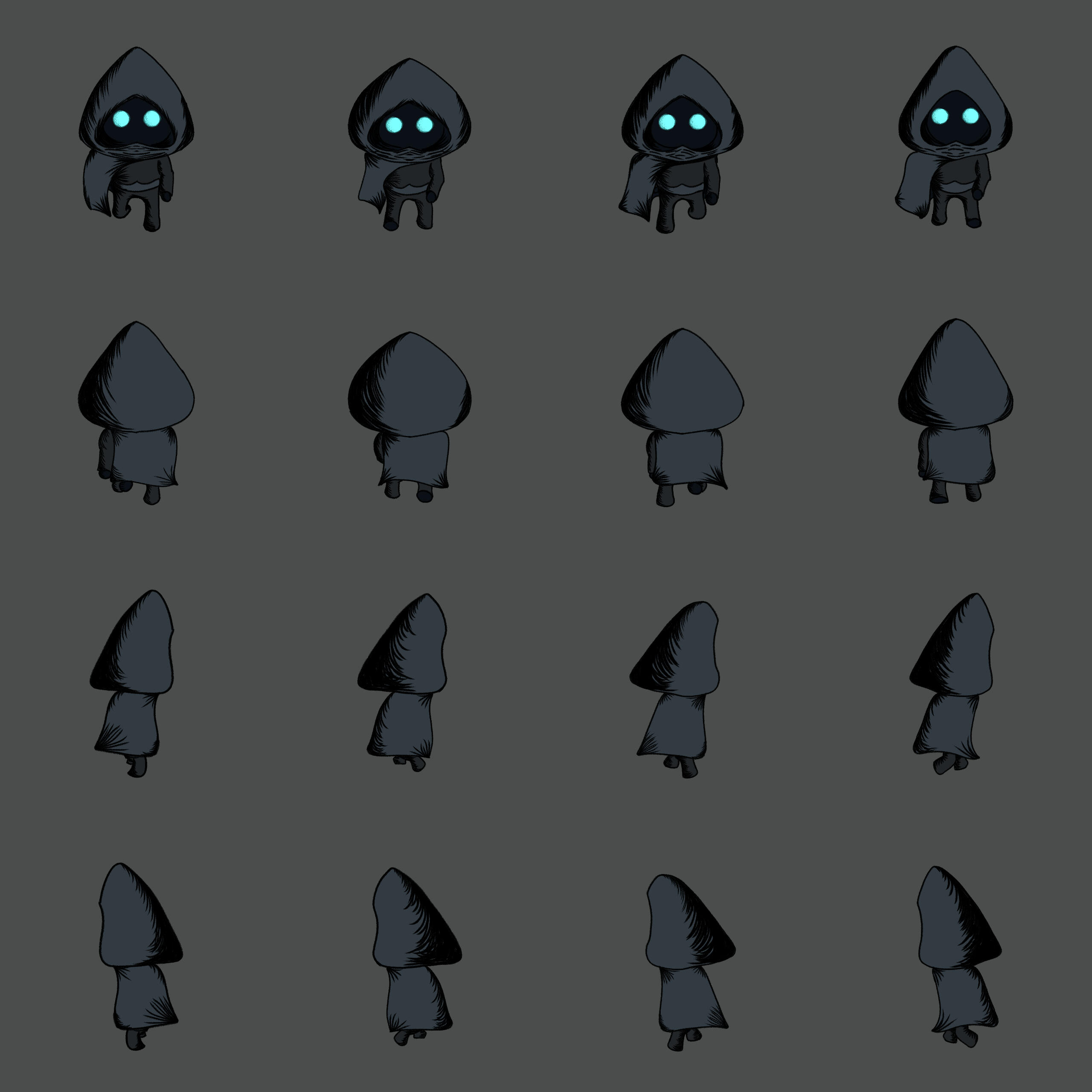 Every ref sheet includes a color palette, character name & description and background